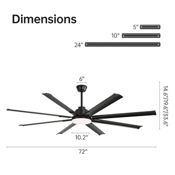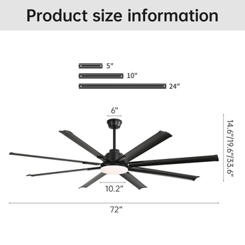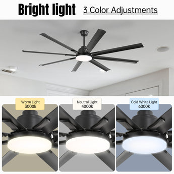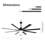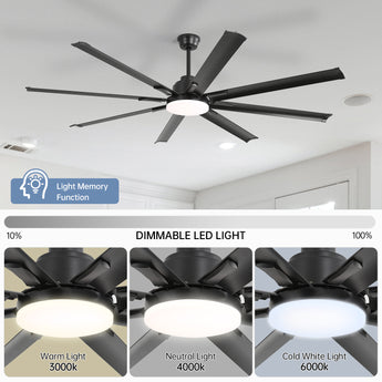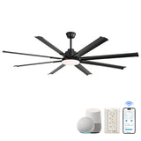KBS 72 Inch Industrial Smart Ceiling Fan with LED Light 8 Blades High Airflow