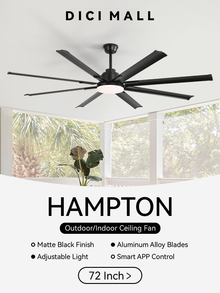 Transform your outdoor spaces with the 72-inch Outdoor Smart Ceiling Fan Light, combining high-performance functionality with modern technology. Designed for large patios, verandas, or covered outdoor areas, this fan provides optimal airflow and lighting, enhancing your outdoor living experience.
