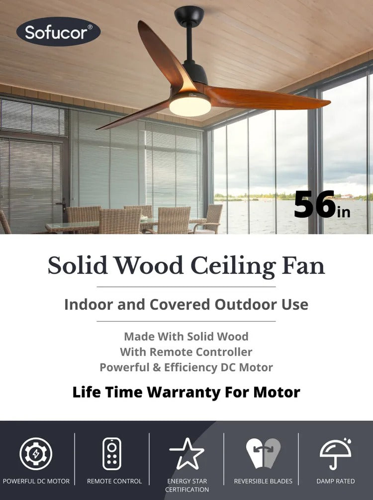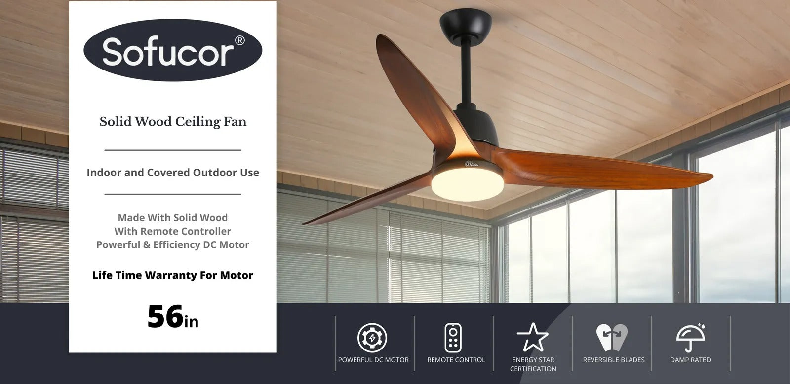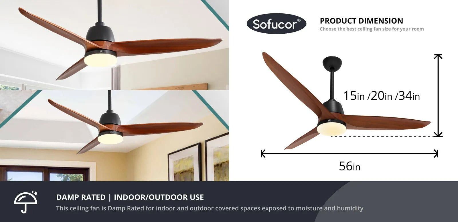 Elevate your space with the perfect blend of style, quiet operation, and smart functionality offered by the Sofucor 52-Inch DC Motor Ceiling Fan.