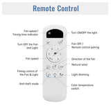 Remote control offers 6 speeds, timer, and memory function for convenience.