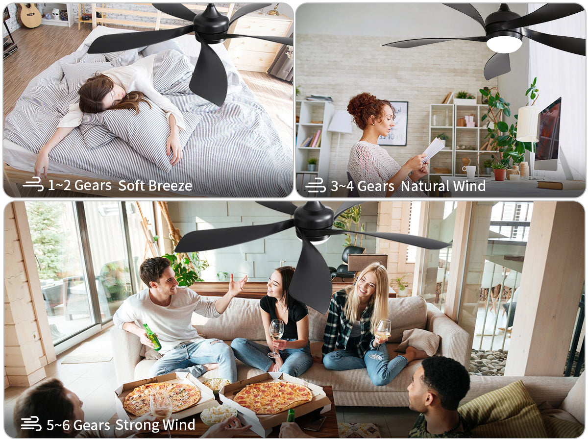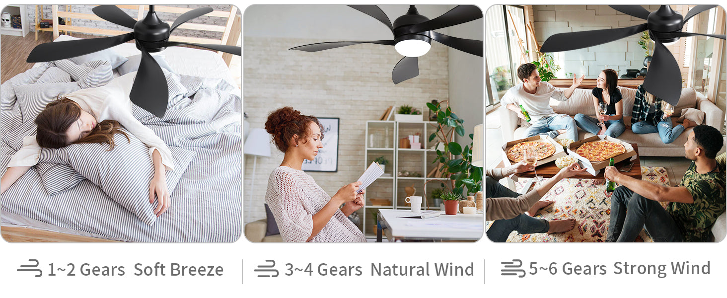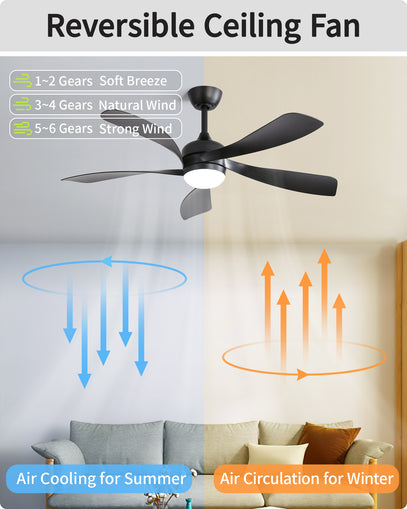 Reversible Airflow: DICI's reversible ceiling fan allows you to switch between downward airflow for summer and upward airflow for winter. This feature helps reclaim lost heat from the ceiling, reducing energy costs and providing a comfortable environment throughout the year. Enjoy fresh air without any seasonal inconvenience!