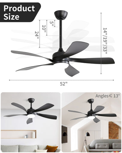 Easy Installation: With a 52-inch diameter and compatibility for ceilings with a maximum slope of 15 degrees, our ceiling fan is designed for easy installation. Most functional components come pre-assembled, allowing you to save on electrician costs and complete the installation on your own. Refer to the user manual for guidance.