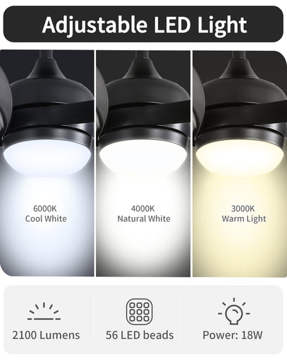 Upgraded 3 Color LED Change Light: Experience the latest in lighting technology with intelligent dimmable LED. The 18W color temperature is fully adjustable, providing ambient lighting that's closer to the real and original color of the object. Smart memory technology ensures the fan retains the last light setting, offering convenience and efficiency.