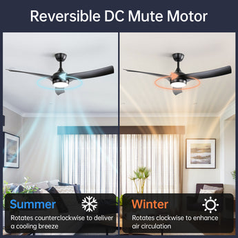 Enhance your living space with the KBS 52" Modern Ceiling Fan — a stylish, high-performance fan designed to deliver year-round comfort. With its aerodynamic 3-blade ABS construction and integrated LED light, this ceiling fan is perfect for contemporary homes, offering both functionality and elegance in one sleek package.
