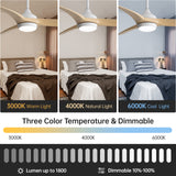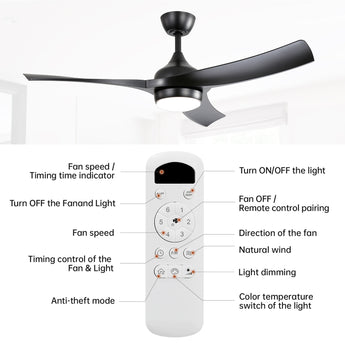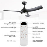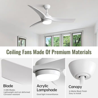 KBS 52" Modern 3-Blade ABS Ceiling Fan with LED Light and Remote Control