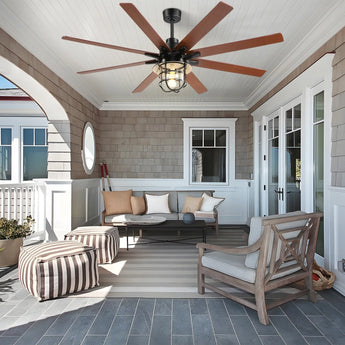 Werten Sie Ihren Raum mit unserem 66-Zoll-Deckenventilator mit 8 Flügeln auf. Er verbindet modernen Landhauscharme mit außergewöhnlicher Funktionalität. Mit seinem minimalistischen Design und den zweifarbigen Sperrholzflügeln passt dieser Ventilator zu jeder Einrichtung und eignet sich perfekt für Innenräume (5,5 x 5,5 m – 7,6 x 7,6 m) und überdachte Außenbereiche wie Wohnzimmer und Terrassen.
