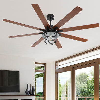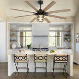 KBS 66 Zoll Alt-moderner Deckenventilator aus Metall, Glas und hellem Sperrholz mit 8 Flügeln für den Innenbereich