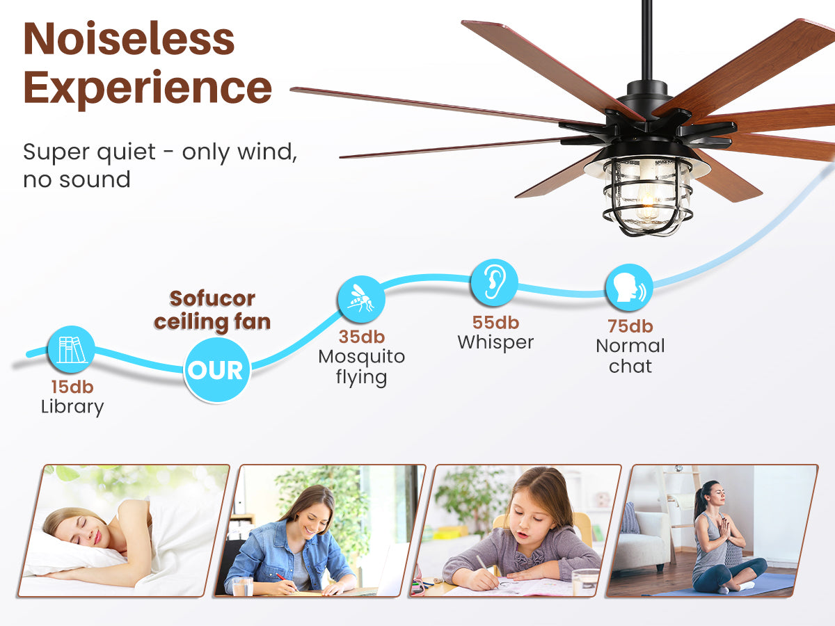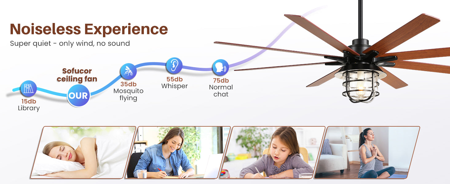 Leise und effizient : Ausgestattet mit einem leistungsstarken und dennoch ultraleisen Gleichstrommotor arbeitet dieser Ventilator mit einem niedrigen Geräuschpegel von 30 dB und liefert einen Luftstrom von bis zu 7.000 CFM. Der Gleichstrommotor der neuen Generation mit reinem Kupferdraht reduziert die Stromkosten im Vergleich zu herkömmlichen Wechselstrommotoren um bis zu 80 % und ist somit ideal für den ganzjährigen Einsatz.