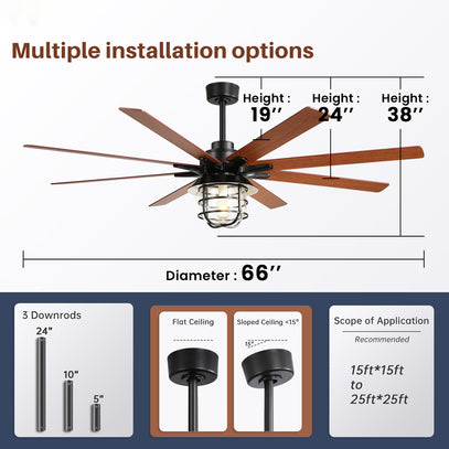 Moderner rustikaler Charme : Dieser 66-Zoll-Deckenventilator mit Licht verleiht Ihrem Raum mit seinem modernen rustikalen Design und 8 zweifarbigen Sperrholzflügeln, die mühelos zu jeder Einrichtung passen, Charakter.