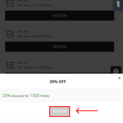 Klicken Sie auf „Einlösemöglichkeiten“ und wählen Sie den gewünschten Rabatt zum Einlösen aus.