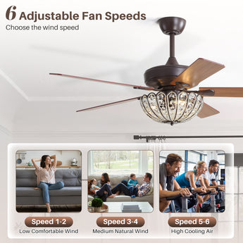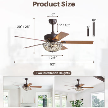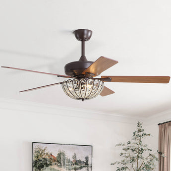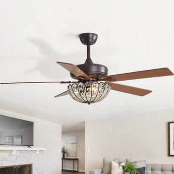 DICI MALL 52" Ceiling Fan with Crystal Light, Oil-Rubbed Bronze Finish & Remote Control