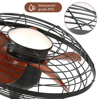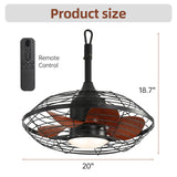 Vintage Caged Ceiling Fan with Light 20 inch